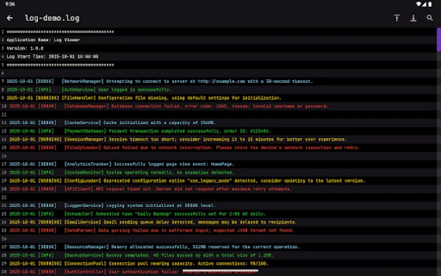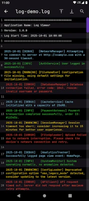 Key Features: - Log Level Highlighting: Automatically mark logs by level for quick insight. - Smart Keyword Search: Full-text search with precise matching for efficient log exploration. - Quick Jump Navigation: Instantly jump to specific lines to save time. - View History Records: Automatically save log view history for easy reference and management.