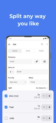 • Split any bill: travel, rent, groceries, restaurants, and more
